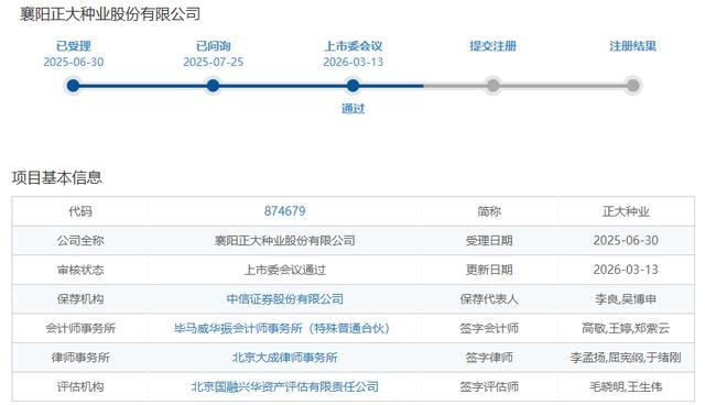 目前,正大种业北交所 IPO审核状态,正式从 ″已问询″ 变更为 ″通过″。标志着这家背靠世界 500强正大集团的国家级种业龙头,顺利闯过 IPO核心审核关卡,其上市进程从2025年6月30日获受理到上会,仅用时约8个月,距离正式登陆A股资本市场仅差提交注册、公开发行的最后环节。
