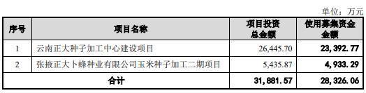 根据招股说明书,公司本次募投项目均围绕主营业务展开。其中,"云南正大种子加工中心建设项目"旨在扩大产能,建成后将新增 10,000 吨/年产能,使公司总产能由目前的 30,000 吨/年提升至 40,000 吨/年。