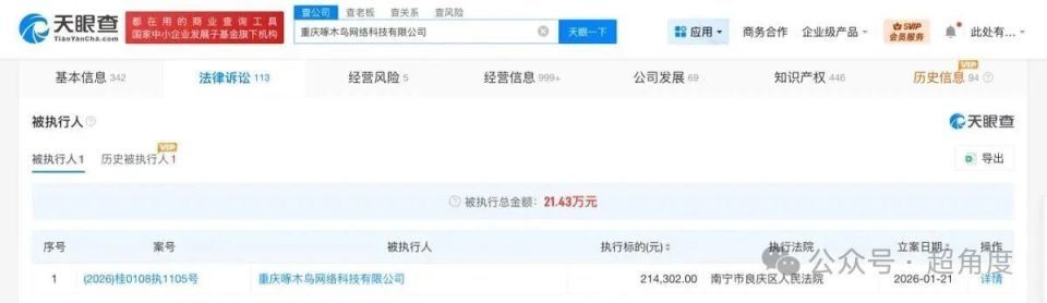 天眼查数据显示,该公司成立于2014年,注册资本约2409万元。除了此次曝光,该公司此前已被强制执行约21.4万元,并深陷多起法律诉讼,案由涵盖劳动争议、合同纠纷及侵权责任等。频繁的官司与执行记录显示,其信誉体系已遭受重创,经营步履维艰。