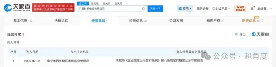 在电线电缆行业,广西耐朗电缆有限公司与广西润雄电缆集团有限公司因产品“瘦身”(偷工减料)被曝光后,均因未按规定公示年度报告被列入经营异常名录。虽然尚未看到吊销执照的处罚,但信用记录的污点将长期影响其招投标资格与市场准入。