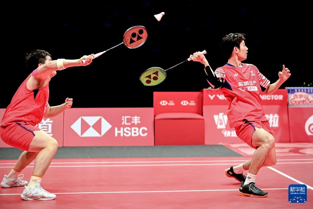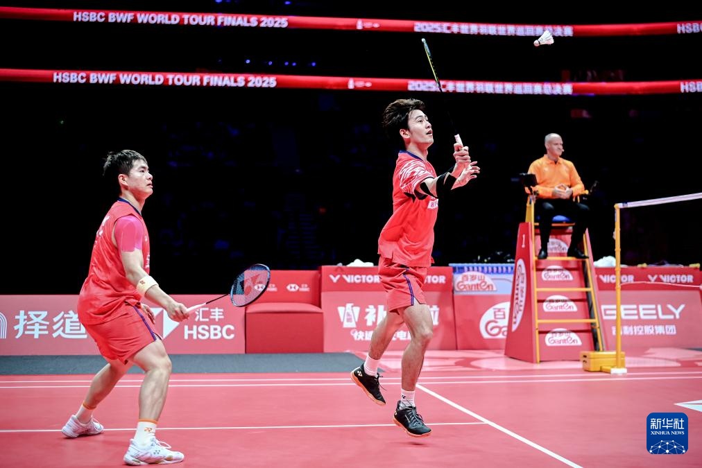 12月21日,中国组合梁伟铿(左)/王昶在决赛中。新华社记者 江汉 摄