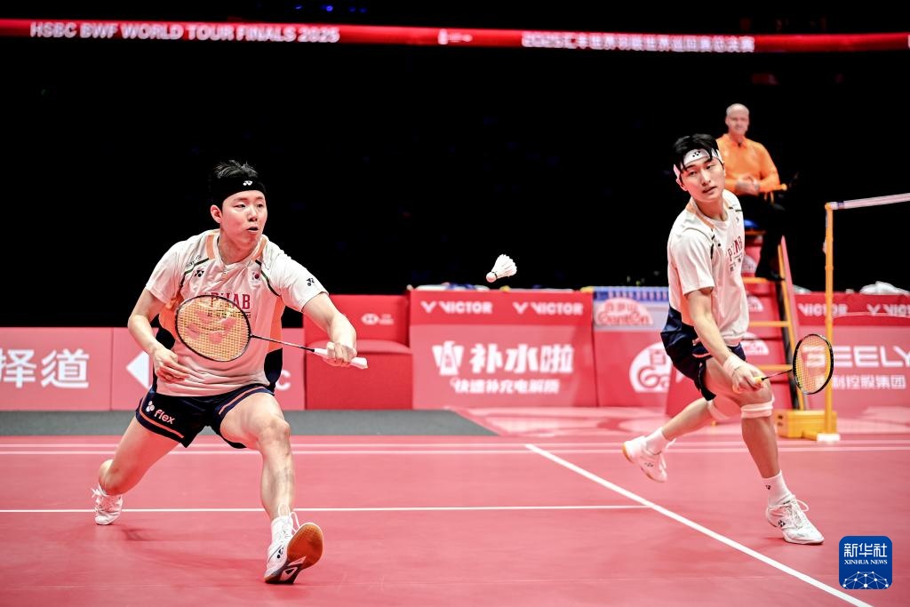12月21日,韩国组合金元昊(右)/徐承宰在决赛中。新华社记者 江汉 摄